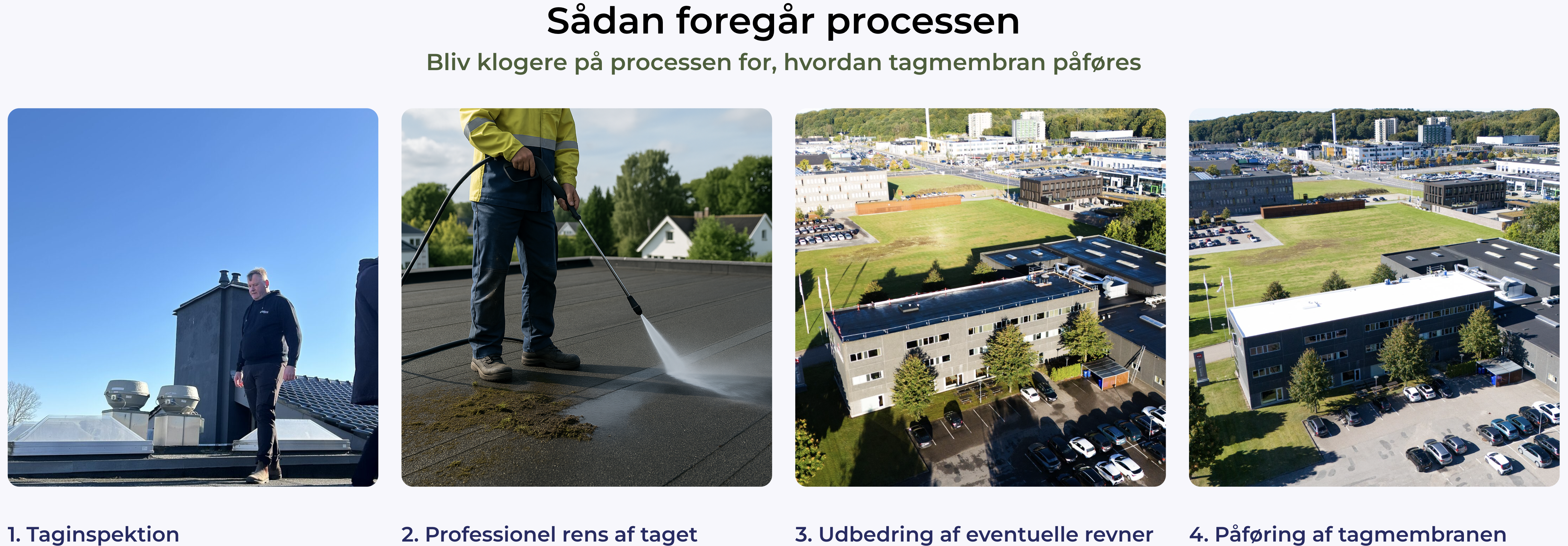 Membranen påføres direkte på det eksisterende tag – uden brug af åben ild. Det giver en hurtig, sikker og let installation.
